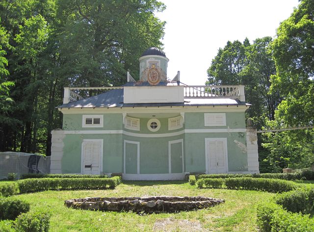 V panském sídle nazvaném Modrý pavilon Terezie Buquoyová bydlela, postavila Lázničky, vesničku a několik dalších staveb…