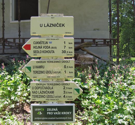 Směrovník nemá kvůli opravám své obvyklé místo, přesto je možné vybrat si podle něho trasu, na kterou si člověk troufá.