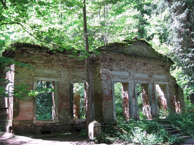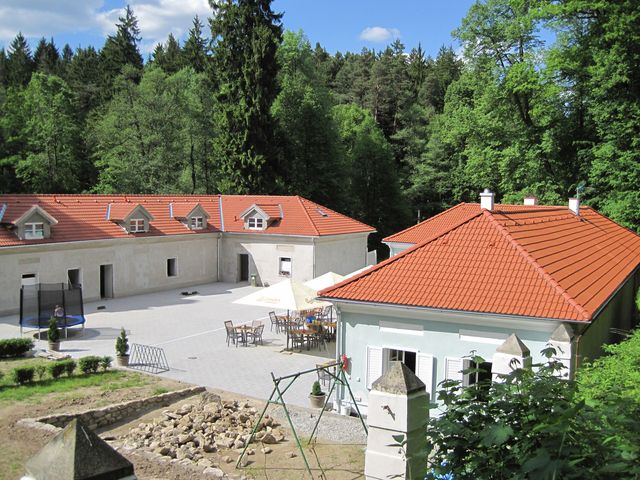 Modrý dům (či pavilon) v zadní části údolí vznikl jako sezonní panské sídlo a byl zařízen s veškerým komfortem – dnes si to při pohledu na něj dokážeme jen stěží představit.