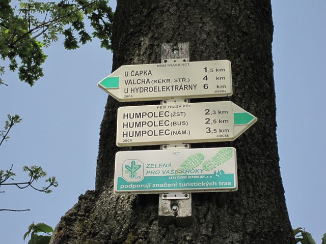 Obnovu zeleně značené pěší trasy, kterou nám přidělil vedoucí Značkařského obvodu Jihlava Standa Balík, jsme začínali v centru Humpolce. Protože v posledních letech probíhá rozsáhlá rekonstrukce vnitřního města a navíc právě teď byl v úpravách parčík, jímž turistická trasa prochází, zabralo nám dost času malování nových značek, které vzaly zasvé během stavebních změn.