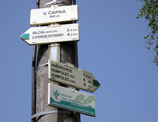 Po pár hodinách jsme došli ke směrovníku U Čapka, kde dnešní zadání končilo.
