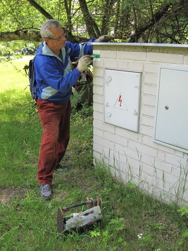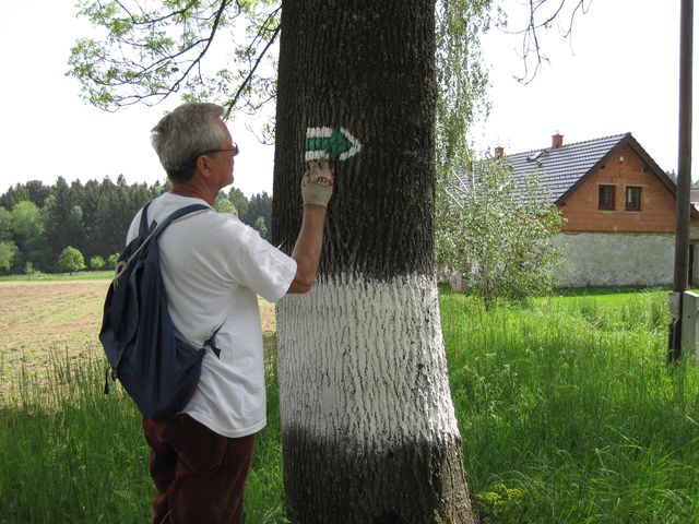 Vraceli jsme se do Humpolce, dělali oprávky a měli radost z výsledku – vtom se „klobásový dobrodinec“ vracel zpět – uviděl nás při práci a zřejmě ho dojalo naše úsilí – výsledkem bylo darování ještě třech dokonale urostlých vonných kousků :-). Při řeči jsme se dozvěděli, že je cykloturista, jeho syn se věnuje orientačnímu běhu, že život je hezkej a že značení v Česku je nejlepší na celým světě…