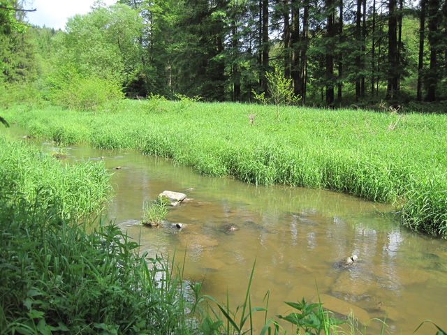 a pak se řeka líně rozleje nivou, nechá se prohřát sluncem a potěší ptactvo i různou vodní havěť a žoužel: