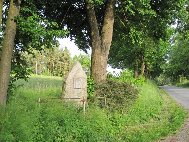 Zbylo nám trochu času, abychom se podívali k památníku, o kterém jsme se dozvěděli ráno. Jeli jsme směrem k Sedlici, nechali Kletečnou na levé straně pod kopcem a v první zatáčce, ze které vpravo odbočovala cesta, jsme uviděli kamenný památník.