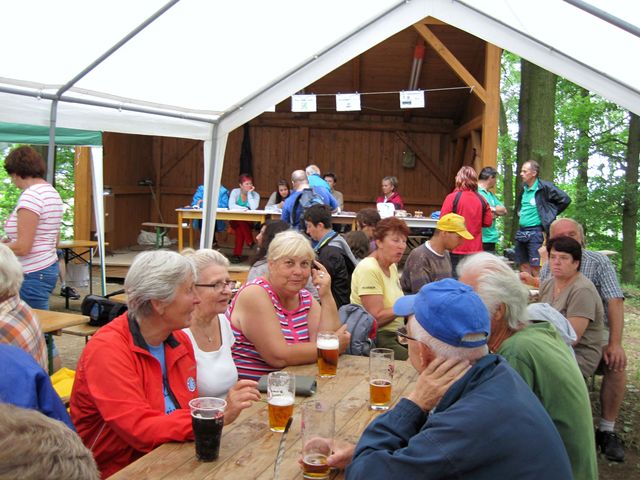 Formality byly vyřízeny, nastalo mlsání – nejdříve kafíčko a tradičně výborné zákusky od kamenských turistek a po chvíli čerstvě vyuzené klobásky nebeské chuti…