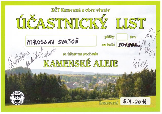Máte-li zájem, můžete kliknout na článek Kamenské aleje 2010 či si přečíst o významné akci úspěšně zorganizované kamenskými turisty v roce 2013 – Zahájení jarní turistické sezony v oblasti KČT Vysočina.