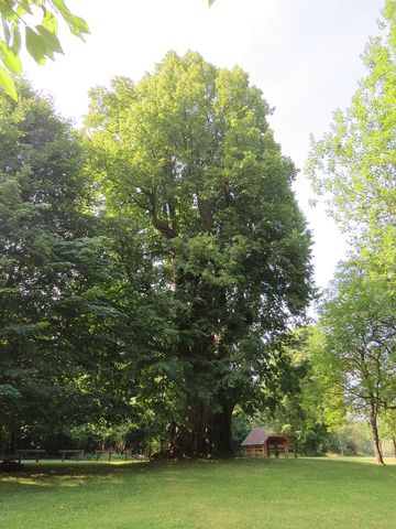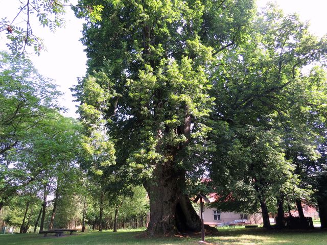 Impozantní lípa, dvacet metrů vysoká, s obvodem kmene sedm a půl metru, byla prohlášena památným stromem