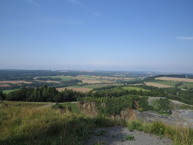 Z horního okraje lomu je libý výhled na Podoubraví: