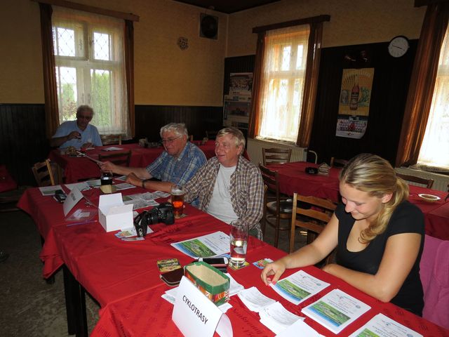 potom posezení na zahradě obecního úřadu s hudbou místní kapely a, což nás zajímalo více, s grilovanými rybími a uzenářskými pochoutkami. Nad nimi jsme si popovídali s turisty z Jihlavy, Třebíče, Pelhřimova, Havlíčkova Brodu, Žďáru, Hlinska, Kutné Hory – a pravděpodobně i ze zbytku světa… 🙂