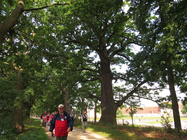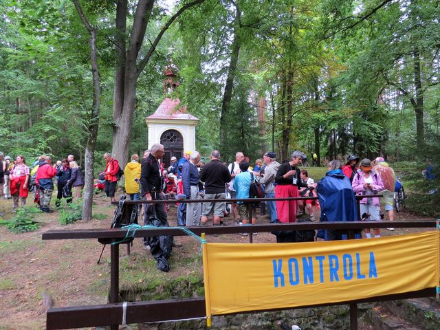 První razítková kontrola byla hned po pár kilometrech u sádek Šaloun (nejstarší v Čechách, založeny Štěpánkem Netolickým), proto se početnější skupina turistů dosud držela pospolu a vypadala docela malebně.