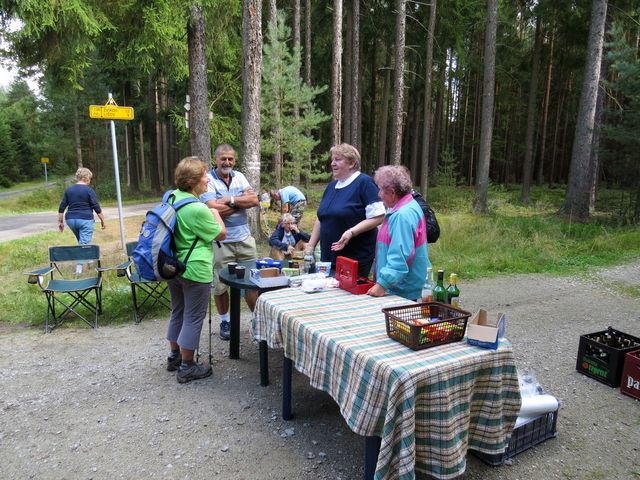 Pořadatelé dobře předpokládali, že několikakilometrová cesta po lesní silničce potřebuje nějaké povzbuzení – jak rádi jsme spatřili milé Marušky a usměvavého Vladimíra, kteří zajišťují perfektní občerstvovací servis na trasách!