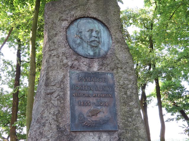 Na hrázi třeboňského rybníka Svět stojí od roku 1928 památník rybníkáře Josefa Šusty (1835–1914), otce historika stejného jména: