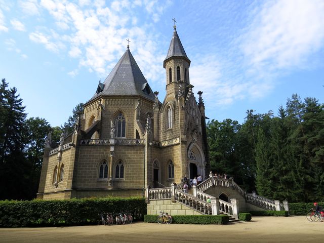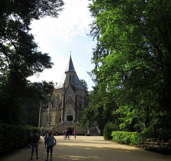 To už pomalu vcházíme do anglického parku vybudovaného kolem novogotické Schwarzenberské hrobky ze sedmdesátých let 19. století.