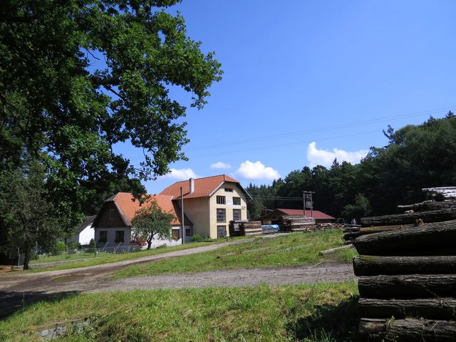 V Odměnách odbočovala červená značka do Spolí a dále na jih, my jsme se ale vydali po naučné stezce, která vedla lesem ke Spolskému mlýnu a okruhem po druhém břehu se vracela do Třeboně. Mlýn, k němuž později přibyla pila, byl postaven v roce 1861 na Spolském potoce, který je hlavní zdrojnicí vody pro rybník Svět.