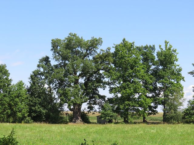Na hrázi rybníka Dolní Zlatník rostou nepřehlédnutelné duby – jeden z nich má po obvodu skoro šest metrů, vysoký je 20 metrů.
