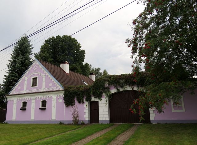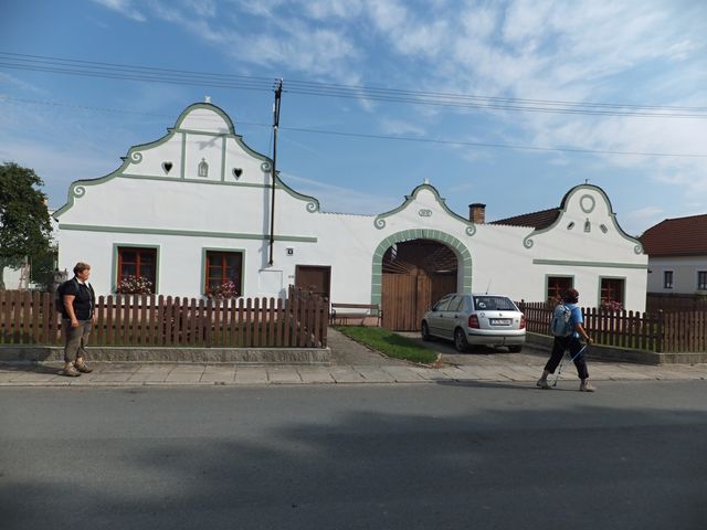 Abychom si nemysleli, že svět je samý ples, začalo drobně mrholit, takže barevné usedlosti v Nové Hlíně nezářily ve slunci, přesto byly hezké.