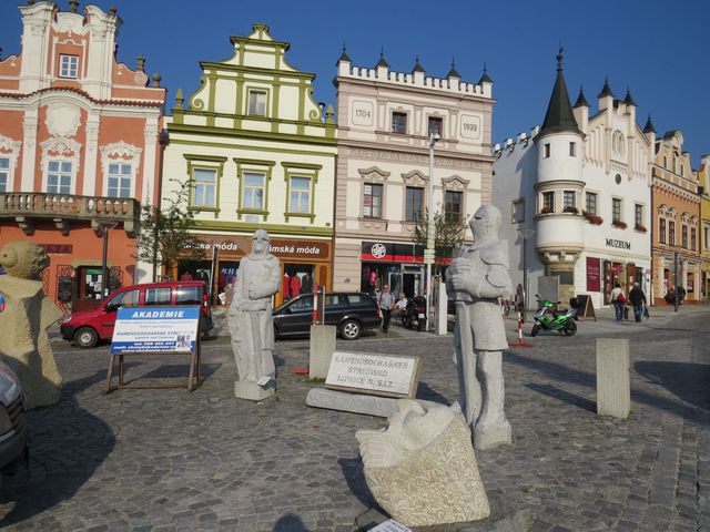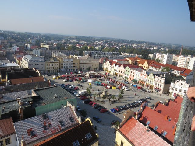 Protože však dneska byl v Havlíčkově Brodě Den otevřených dveří památek, zařadili jsme návštěvu několika z nich před turistickou část výletu. Do doby, kdy se otevírala 51 metrů vysoká vyhlídková věž děkanského kostela Nanebevzetí Panny Marie, jsme měli čas užít si procházky po náměstí žijícím dnes jarmarkem a hudbou country kapely.