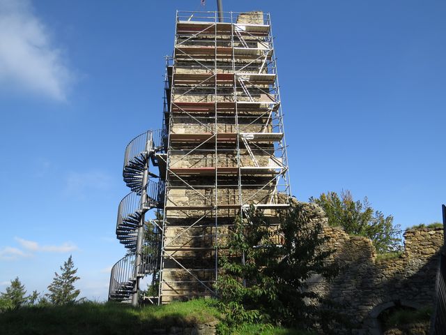 Loni bylo rozhodnuto, že horní plošina hranolové věže bude sloužit pro výhled do kraje a že kvůli tomu proběhnou stavební úpravy – vně věže je už skoro dobudované kovové šroubovité schodiště. Původní vstup do věže býval na západní straně ve výšce asi 11 metrů nad úrovní hradního nádvoří.