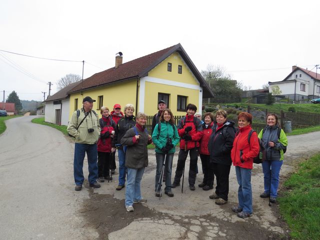 Červeně značená cesta nás dovedla na náves, kde se naskytla lukrativní příležitost ke koupi právě vyloveného kapra – každý kus byl za 100 Kč (no nekup to!), a tak mnohým přibyla na další kilometry ještě jedna taška s čerstvě zabitým šupináčem…