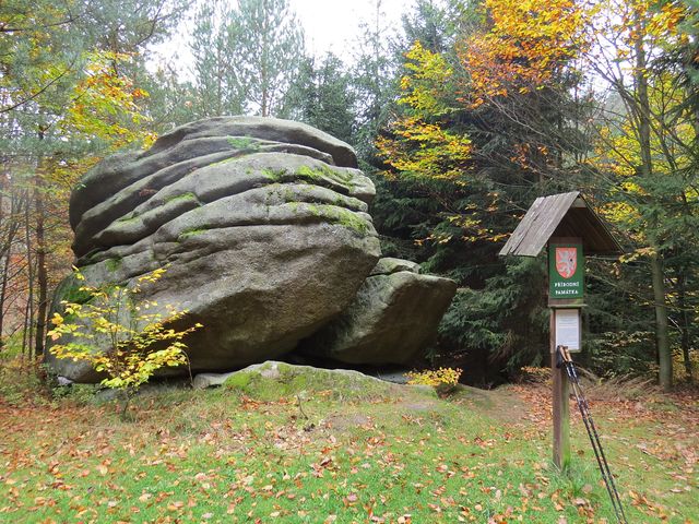 Zanořili jsme se do lesa pokrývajícího jižní svah Melechova a neodpustili si odbočku k Čertovu kameni – můžete porovnat rozdíl na fotce v letním slunci a podzimní náladu stejného místa.