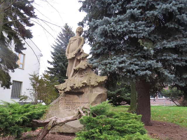 Hned kousek od sokolovny vévodí malému náměstíčku pomník z roku 1910, který vytvořil sochař Václav Suchomel k uctění památky lesnického spisovatele a pedagoga Jana Doležala (1847–1901), zakladatele české lesnické literatury, vydavatele časopisu Háj, prvního periodika, zabývajícího se touto tematikou.