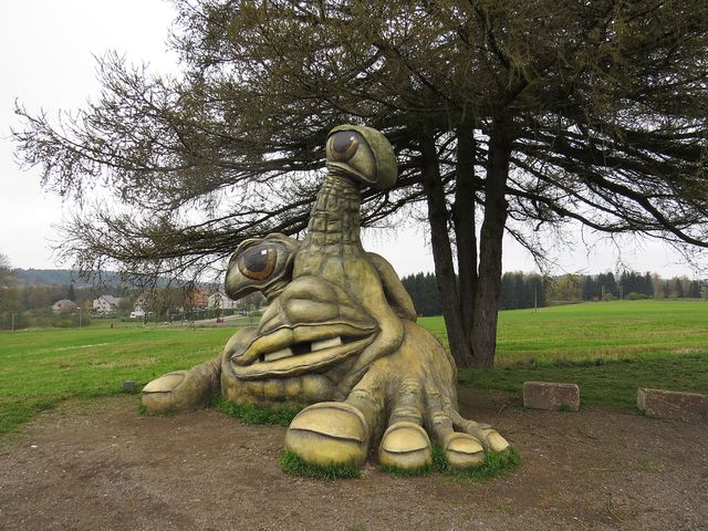 Pokračovali jsme známou cestou, již lemují už známé sochy Michala Olšiaka: poblíž Hamrů věčně dobře naladěný Hamroň