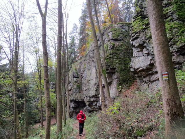 Odtud jsme stoupali lesem k Peperku (675 m n. m.), skále okrášlené pověstmi o čertech, poustevnících i hledačích pokladů…