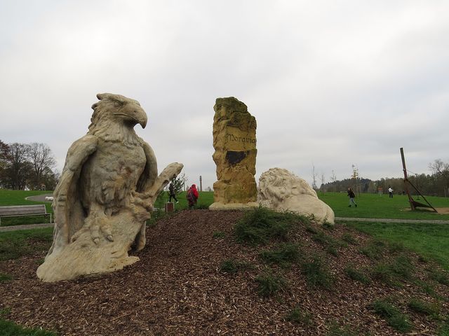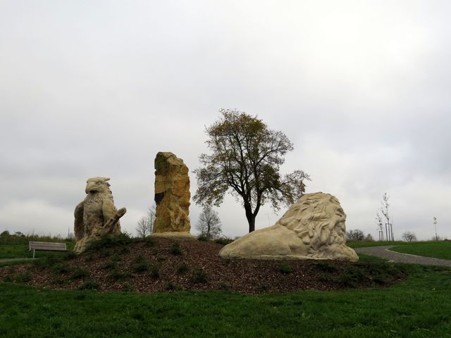 V roce 2009, když jsme tu na podzim byli při stejné akci, sousoší bylo rozestavěné (viz Podzimní Vysočinou 2009).