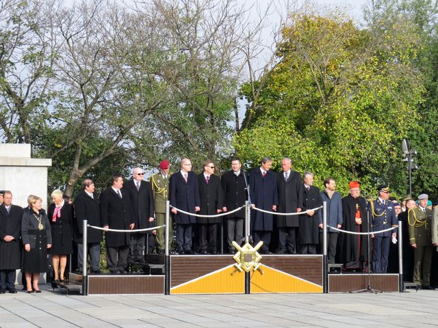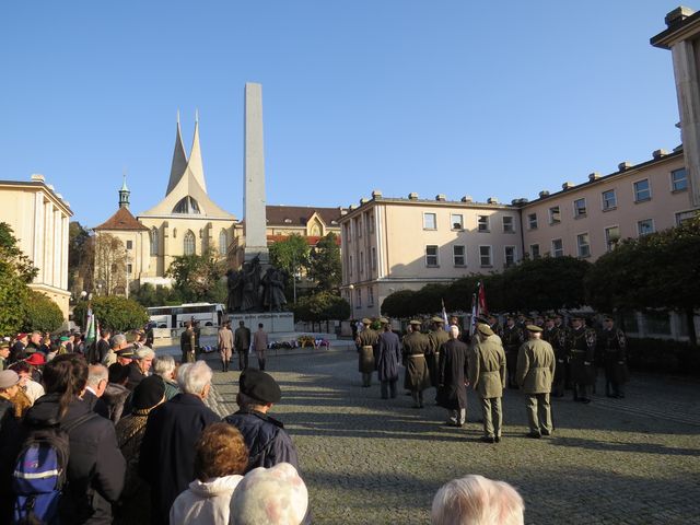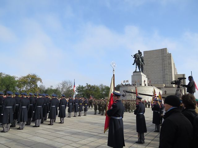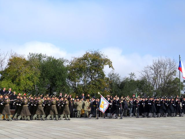 Seběhli jsme po svažitých ulicích pod Vítkov, pak vyšlápli vzhůru po jeho svahu a za pár minutek už na Čestném dvoře Národního památníku začínal pietní akt k 96. výročí vzniku samostatného československého státu.