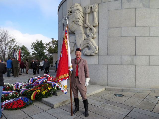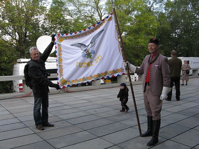 na dalším obrázku vidíme odnášení praporu po skončení vzpomínkové slavnosti: