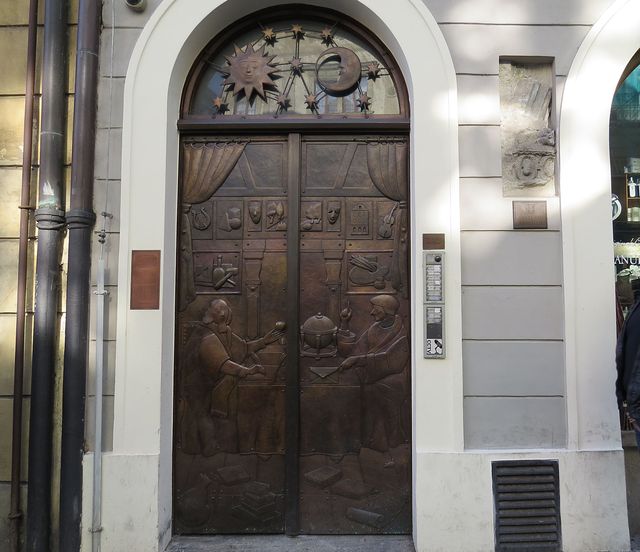 Na druhém konci Karlova mostu nás vzala do své náruče Malá Strana – kvůli zachování duševního zdraví jsme nekoukali do výloh drahých obchodů, zaujaly nás (určitě mnohem dražší 🙂 ) pozoruhodné dveře v Mostecké ulici,