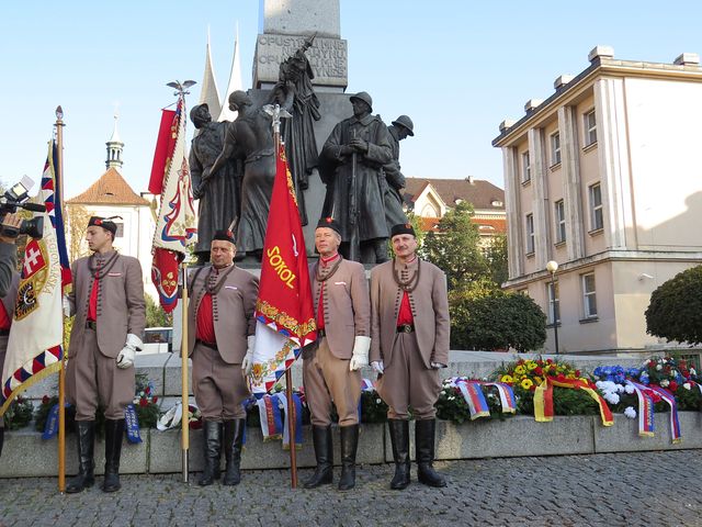 Samozřejmě tu nechyběli Sokolové – jejich unikátní kroje patří neodmyslitelně ke vzpomínkovým akcím na začátky samostatného státu.