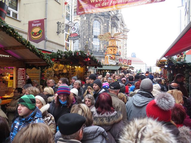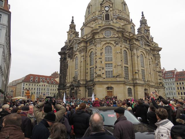 Šli jsme do centra a davy houstly, všichni jsme mířili k Frauenkirche, kde se měl objevit avizovaný Štolový průvod.