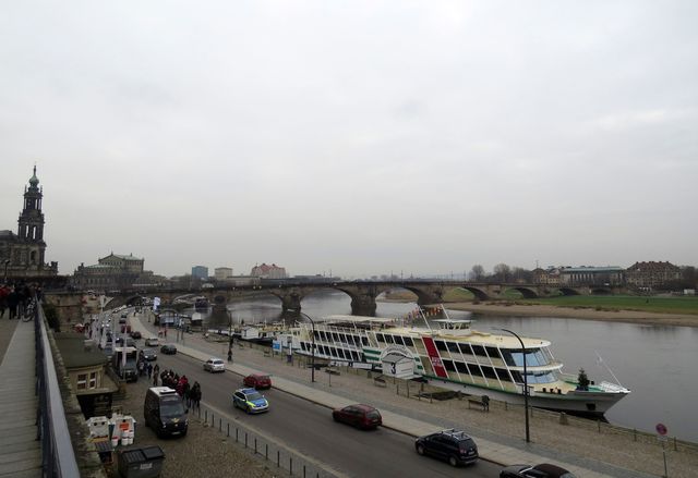 Obzvláště působivý byl výklad na 500 metrů dlouhé Brühlské terase s výhledem na známé drážďanské věže a Labe.