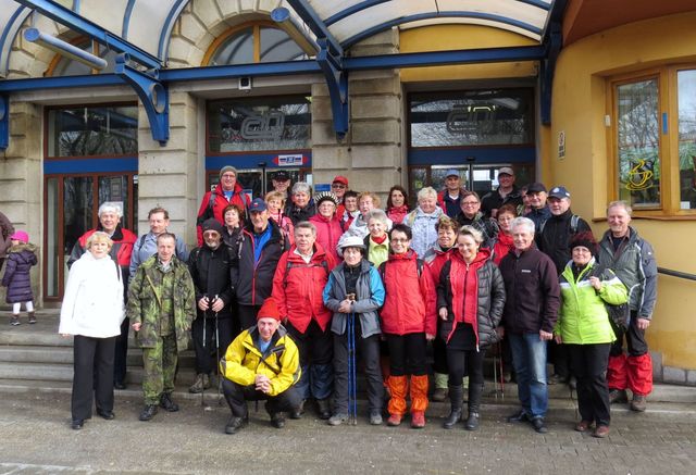 Většina turistů přišla do Ždírce pěšky, nejdelší trasa začínala ve 12:30 před jihlavským hlavním nádražím, kde jsme jako vždycky pořídili památeční foto: