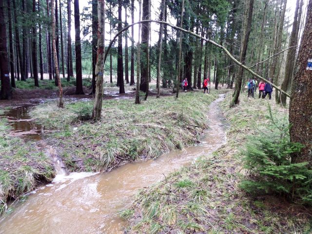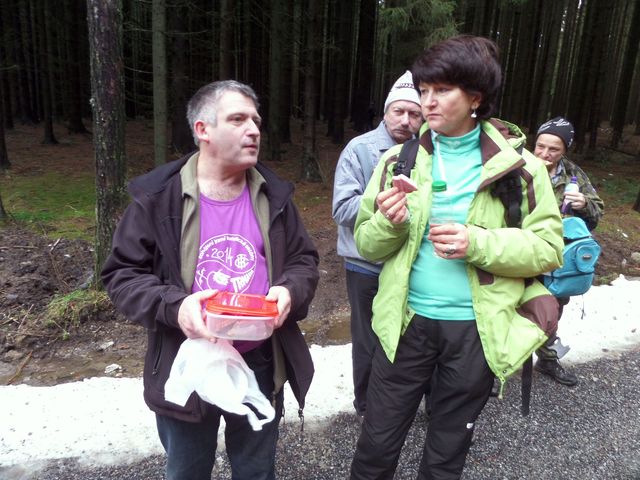 Hned poté jsme s Věrou a Jirkou Veselými odjeli s auty plnými proviantu připravit všechno na přivítání pochodníků ve Ždírci a Jitka a Honza Korbelovi se ujali vedení trasy přes pole-lesy do Ždírce – bylo slunečno, silný protivítr, terén značně promáčený po deštích v minulých dnech…