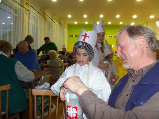 Před čtvrtou odpolední se do sálu kulturního domu dostavily všechny skupinky tancechtivých, všichni dostali při vstupu kvalitní víno a pověstné výborné věnečky s krémem, pečené paní předsedovou, a program začal, jako vždycky, pěveckým vystoupením ždíreckých koledníků, kterým se turisté kromě potlesku odměnili finančními příspěvky do tříkrálové sbírky.