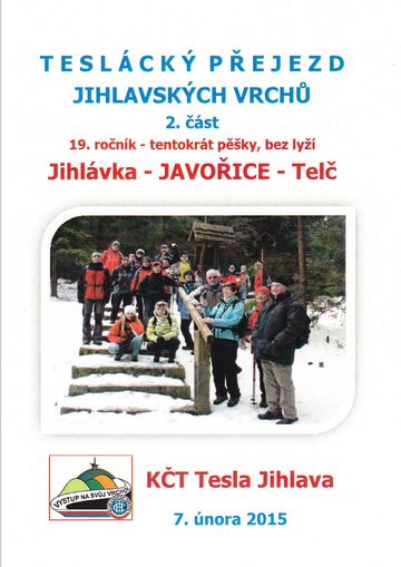 Na startu v Jihlávce se nás sešlo 18, obzvláště mě potěšilo, že sedm turistů bylo z KČT Čeřínek – svou přítomností naznačili, že si váží historické akce, za jejíž zachování vděčíme turistům z KČT Tesla (původně byl dvoudenní pochod založen v roce 1970 Ing. Kodayem z KČT Čeřínek, po třiceti letech zrušen jeho nástupcem Z. Kurkou; na přímluvu Ing. Kodaye se pořadatelství ujali „tesláci“).
