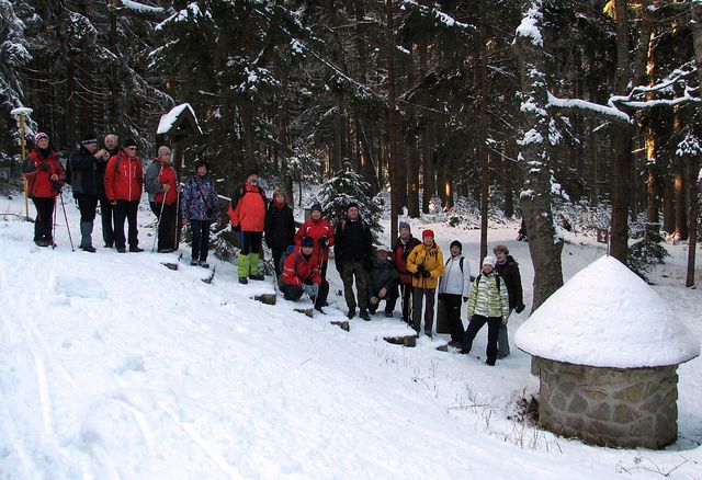 Javořickými lesy jsme došli ke Studánce Páně, kde jsme pořídili obligátní foto účastníků: