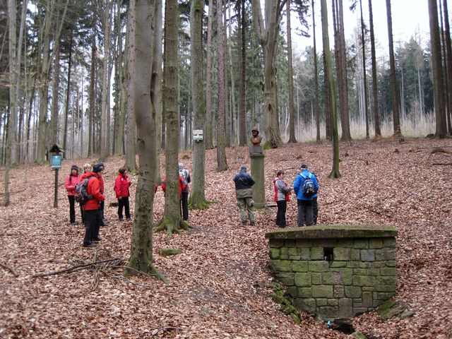 Po necelé čtvrthodince chůze smíšeným lesem jsme došli na místo, které na konci 19. století bývalo dějištěm vlasteneckých poutí (poslední byla roku 1950, pak je komunisté zakázali). Je zde studánka, u níž se podle nápisu na kameni, v roce 1420, když se svým sborem okolo táhl, zastavil Jan Žižka, napil se z ní a prohlásil její vodu za dobrou – tak dal název blízké osadě Dobrá Voda.