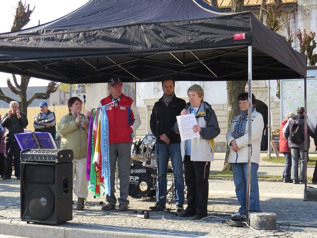 Z pódia pozdravila shromážděné předsedkyně oblasti KČT Vysočina Marie Vincencová, poděkovala pořadatelům za zorganizování akce, pochválila vysočinské značkaře za skvělou práci ve značení a zpřístupňování turistických cest a vyjádřila naději na příliv mladých lidí do Klubu českých turistů.