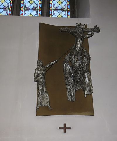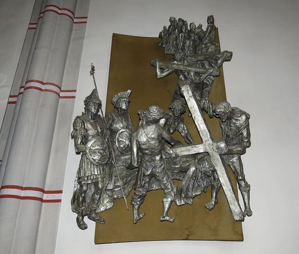 a zastavili se v kostele sv. Prokopa, abychom se pokochali krásou cínových reliéfů křížové cesty Karla Stádníka: