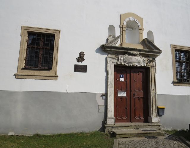 Poblíž vchodu do baziliky jsme si nemohli nevšimnout pamětní desky věnované Matěji Josefu Sychrovi (1776–1830), knězi, obrozenskému spisovateli a jazykozpytci, který se při svém působení ve Žďáře zasloužil o opravy tehdy velice zchátralého poutního kostela sv. Jana Nepomuckého na Zelené hoře – objekt byl v tak špatném stavu, že se dokonce uvažovalo o jeho zbourání.