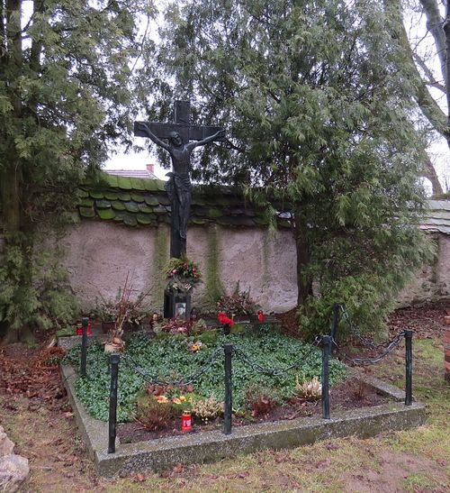 Na starém hřbitově zůstaly ještě dva secesní cihlové náhrobky navržené rovněž Františkem Bílkem – na tom, který je nad hrobem Dr. Karla Tůmy z Čikova, je kruhový medailon s portrétem Ježíše Krista a textem Přítel spí – jdu abych ho ze sna probudil, na druhém náhrobku je truchlící žena pod křížem – tam byl deset let po své ženě Martě, v roce 1939, pochován Antonín Deml, poštmistr tasovský, bratr Jakubův.