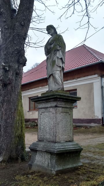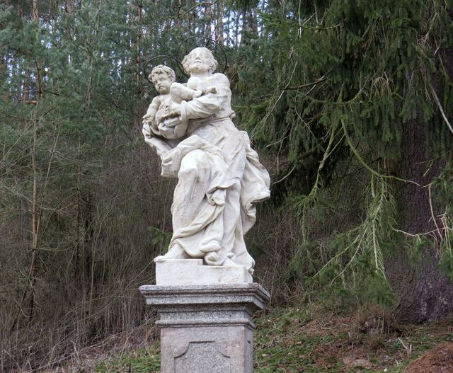Z Tasova jsme vyjeli směrem západním. Asi v polovině táhlého kopce nad Panským (Jelínkovým) mlýnem u silnice, která spojovala dvě základní centra panství hrabat Paarů, Budišov a Tasov, stojí socha sv. Josefa s Ježíškem, kterou velice obdivoval Jakub Deml. Dílo Alexandra Jelínka bylo ke spojovací cestě osazeno roku 1728 – dnes je tu pravděpodobně kopie. (Budišov a okolí jsme navštívili před časem – viz Zahájení jarní turistické sezony 2014)