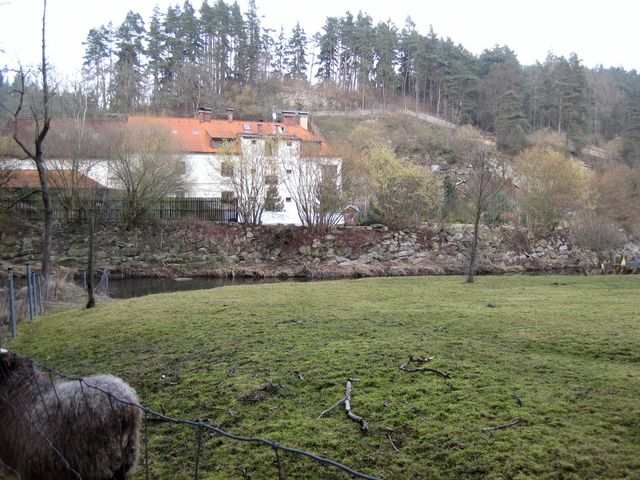Od řeky jsme vzhlíželi na ostroh obtékaný řekou, na kterém začátkem 13. století vystavěli pánové z Lomnice a Meziříčí na ochranu cesty Pooslavím hrad Tassenberg – podle historicky ne zcela podložených informací snad tam stál hrad už v roce 799 – jisté ale je, že od konce 14. století už byl jeho osud zpečetěn – má se za to, že byl rozbořen za domácích válek mezi markrabaty. V současnosti obepíná celý skalnatý hřeben plot – prý jsou tam vysázené stromky, tak aby jim někdo neublížil…