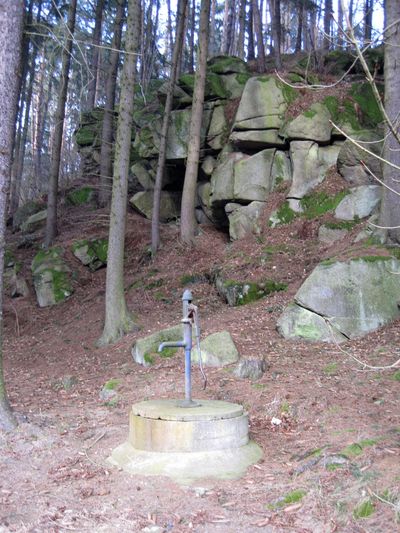 Dřevěnou chatku odvál čas, zbyly jen kamenné, sotva znatelné schůdky a základy – a to světlé místo připravené pro pamětní desku…