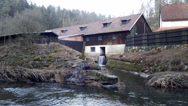 Cesta údolím ústí na nivu u Oslavy, kde v jednom z nejkrásnějších míst na řece stojí mlýn, budovaný několika generacemi – naposledy patřil rodu Stejskalových, dědic majetku však nehospodařil dobře a nakonec musel celý objekt prodat.
