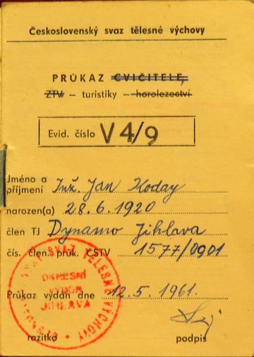 Ing. Jan Koday se postupně stával nepřehlédnutelnou osobností nejen pro své sportovní výkony, ale i organizační schopnosti a vstřícnou povahu. On i jeho žena se kromě turistiky, v níž působili i jako cvičitelé, dlouhodobě věnovali dětem sdruženým v organizaci ZRTV (Základní a rekreační tělesná výchova) při TJ Dynamo, ze kterých vyrostlo několik výborných orientačních běžců.