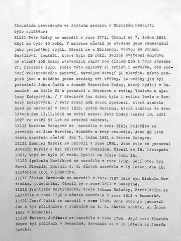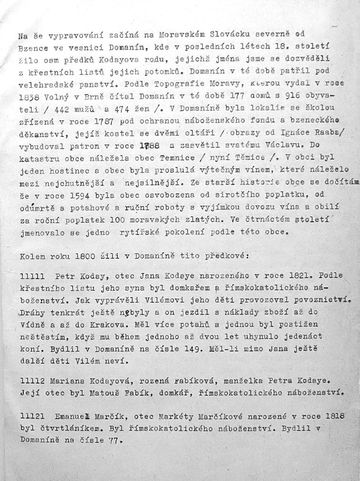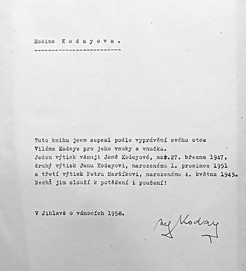 V roce 1994 dokončil rozsáhlou kroniku matčina rodu, začínající zápisem z roku 1776 – podrobně zmapoval historii rodu Šlerků na Žďársku v minulých stoletích. Završil tím objemné zápisy o životě svých předků – v roce 1958, když zemřel otec Vilém Koday, zpracoval podle jeho vyprávění a archivních dokladů kroniku rodu Kodayů až k roku 1771 – oba svazky mají nevyčíslitelnou hodnotu.